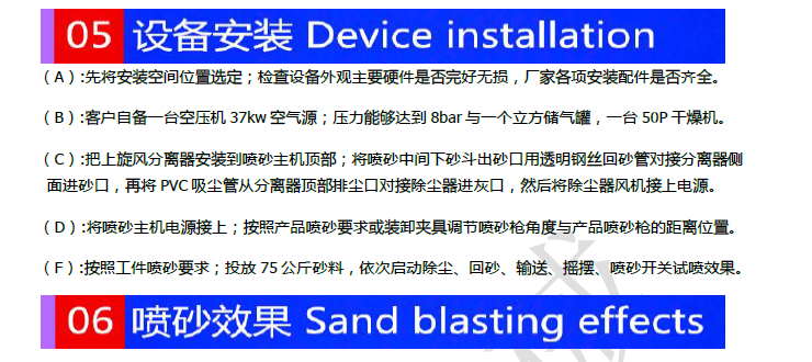 上面按照调试,设备带有4套万象导轮子,方便车间活动式喷砂作业。