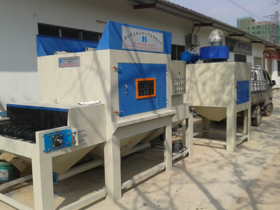本机适用于针对贵公司产品的喷砂加工要求,设计的专用喷砂设备,消除外表的污垢,划痕及其他杂物,使表面达到哑光状态,同样可以用于其他板材、平面材料、去氧化皮表面光亮及获得均匀的喷砂面和增加表面附着力或用于喷涂、电镀、油漆前的预处理工序。