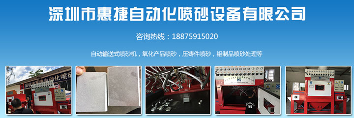 惠捷自动化设备有限公司成立于2000年,广东生产基地位于:广东省深圳市,一分厂位于:广东省深圳龙岗.二分厂位于:广东省惠州市,致力于开发、制造工业表面处理喷砂设备的专业生产厂商。对工业表面处理具有丰富的经验,近年来本公司产品遍布全球,得到广大客户的一致好评,拥有一批丰富经验的专业工业表面处理工程师,对贵公司类似的产品喷砂具有多次成功经验。