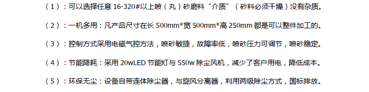 (1):手表壳喷砂机可以选择任意16-320#以上喷(丸)砂磨料“介质”(砂料必须干燥)没有杂质。