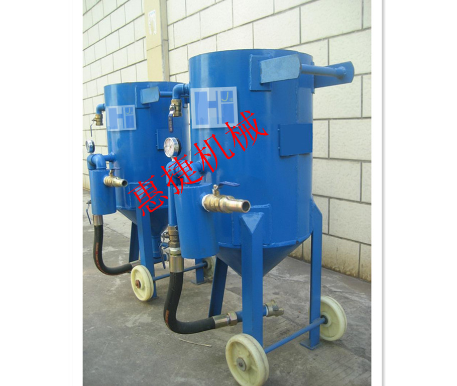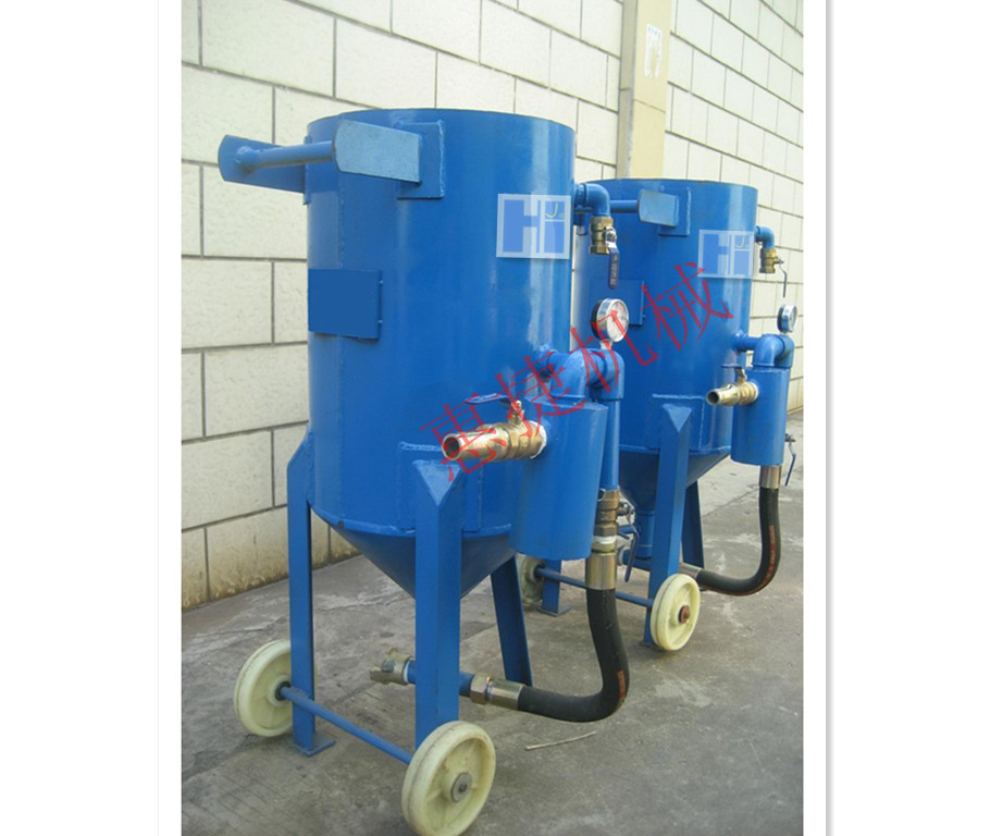动行成高压作用,将高压罐内的砂料通过输砂管喷出,然后随压缩气流由喷枪嘴高速喷射到工件表面,达到喷砂加工的目的。