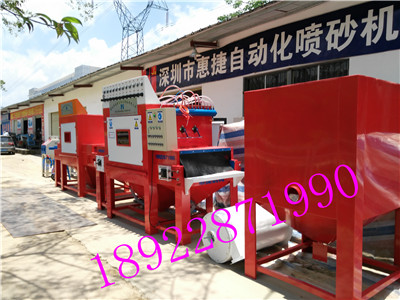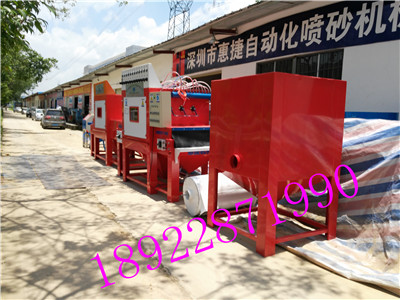 非常荣幸为您介绍驰名商标设备“惠捷喷砂机厂生产的”通过国家LSO9000认证,唯一获得质量检查监督局发行的履带自动喷砂机的合格证厂家“履带喷砂机驰名商标”深圳惠捷履带喷砂机|履带式12支枪输送喷砂机|深圳市履带全自动喷砂机设备。履带式自动喷砂机本机主要特征相貌:有两台变频喷砂驱动器,采用深圳市百合牌1.5P无极变频调速,履带自动喷砂机是采用德国SAS“天然橡胶”它的主要特性:纳米技术复合履带突出点在耐喷,耐抛,耐拉,耐磨砂,喷砂不容易掉工件,自动筛砂,自动循环回收砂料,自动输送喷砂产品,往返输送两用。使用履带输送式喷砂机的好处有很多;例如;压铸件去毛刺,除披风,去拉痕迹,去氧化皮层,另外它还适用于各种:阳极氧化前喷砂处理,它喷砂的产品均匀,效率高,成品率高,喷砂作业时不掉工件,输送产品是稳定性高,转速快,性价比优良,履带经久耐用,并且维修率低,是一款全新型自动喷砂机械设备。也是我厂的明星产品之一,欢迎您来电咨询我厂。设备均有库存现货供应全国各地包括出口型履带式全自动输送喷砂机。