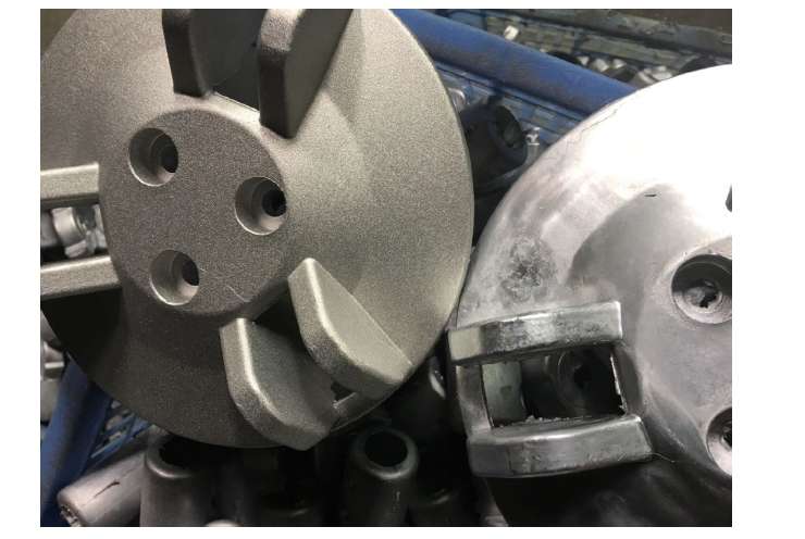 风扇压铸件抛丸对比(右边已经抛丸处理)