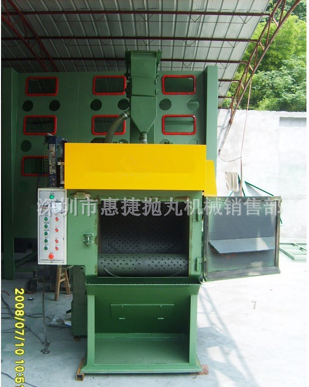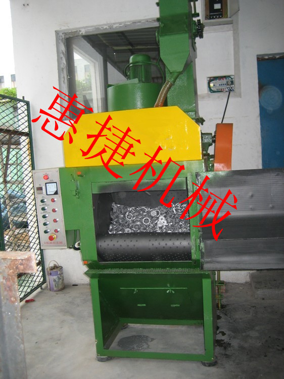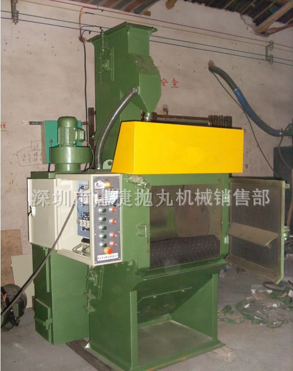 4.停机后,打开抛丸室门,按(滚筒反转)按钮,工件就会倒出,待工件全部倒出后,再按(滚筒停止)按钮,整个工作完成。