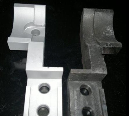 模具喷砂之后的前后对比(左边是喷砂过了的)——右边是没有喷砂的