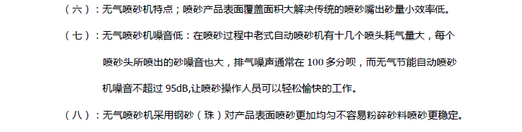 本无气节能喷砂机械设备具有优点;环保节能,无尘高效,结构优良,外观设计新颖,使用寿命长,价格不高,