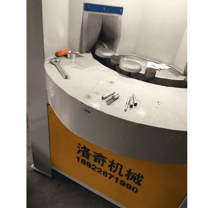 它主要加工喷砂方式是以转盘承载着小转轮在水平面上连续或者间歇运转,产品可以单